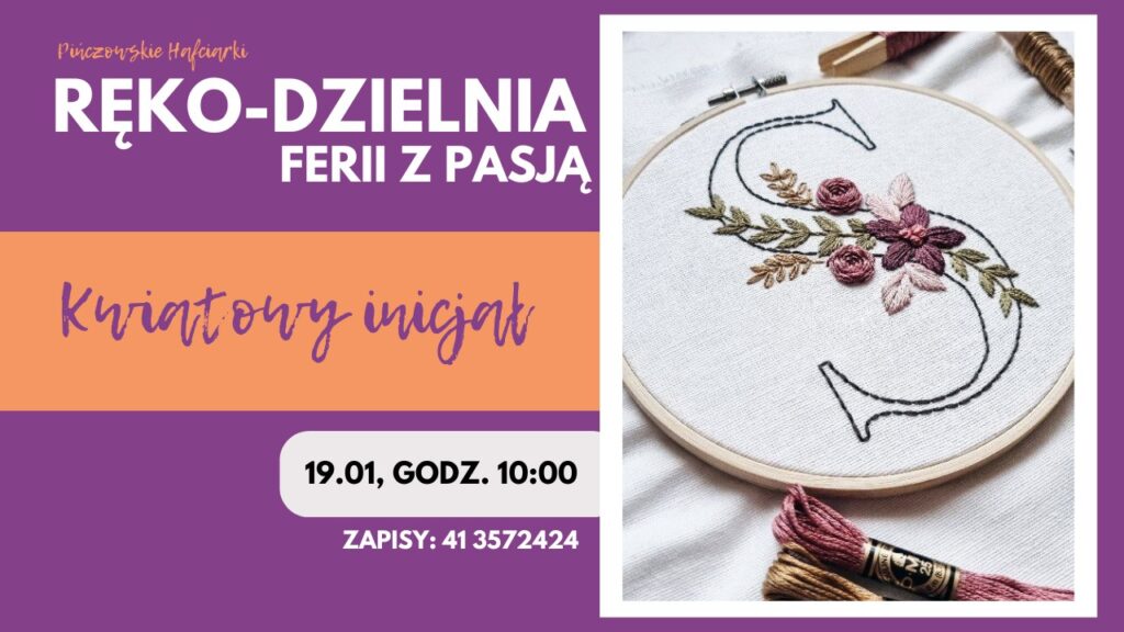 i zapraszamy na warsztat haftu płaskiego, podczas którego – z naszym instruktarzem – wykonacie samodzielnie inicjał imienia ozdobiony motywem kwiatowym. Pokażemy Wam również nasze inne projekty mając wielką nadzieję, że zszyjemy się nicią przyjaźni do rękodzieła artystycznego.